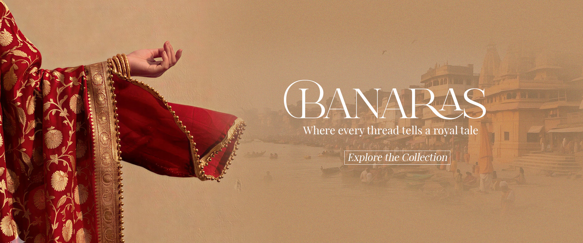 Banarasi-Inspired Pure Chiffon Saree in Fiery Red & Orange